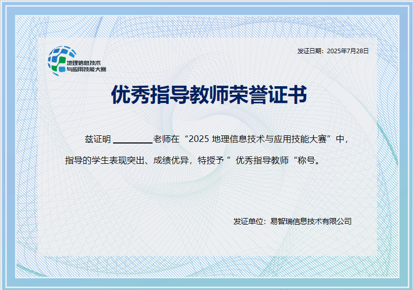 易智瑞“GIS软件操作技能证书”示例: